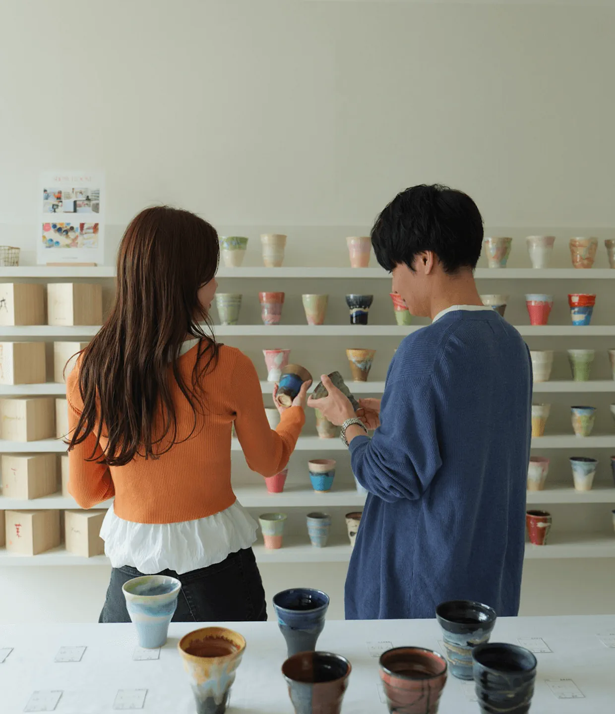 陶芸家がろくろをひき、釉薬で彩り、書家とカリグラファーが筆をもつ。窯に入れ焼成する、焼印を押す、ガラスに色をのせる、名前のイメージでセレクトする、一つずつ丁寧に包む、お届けする。