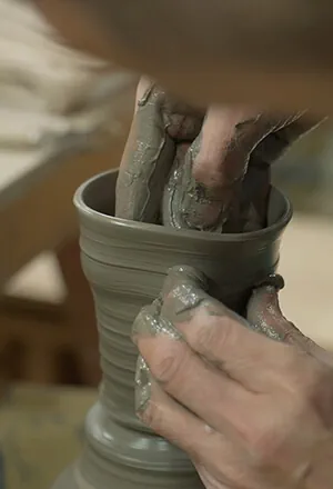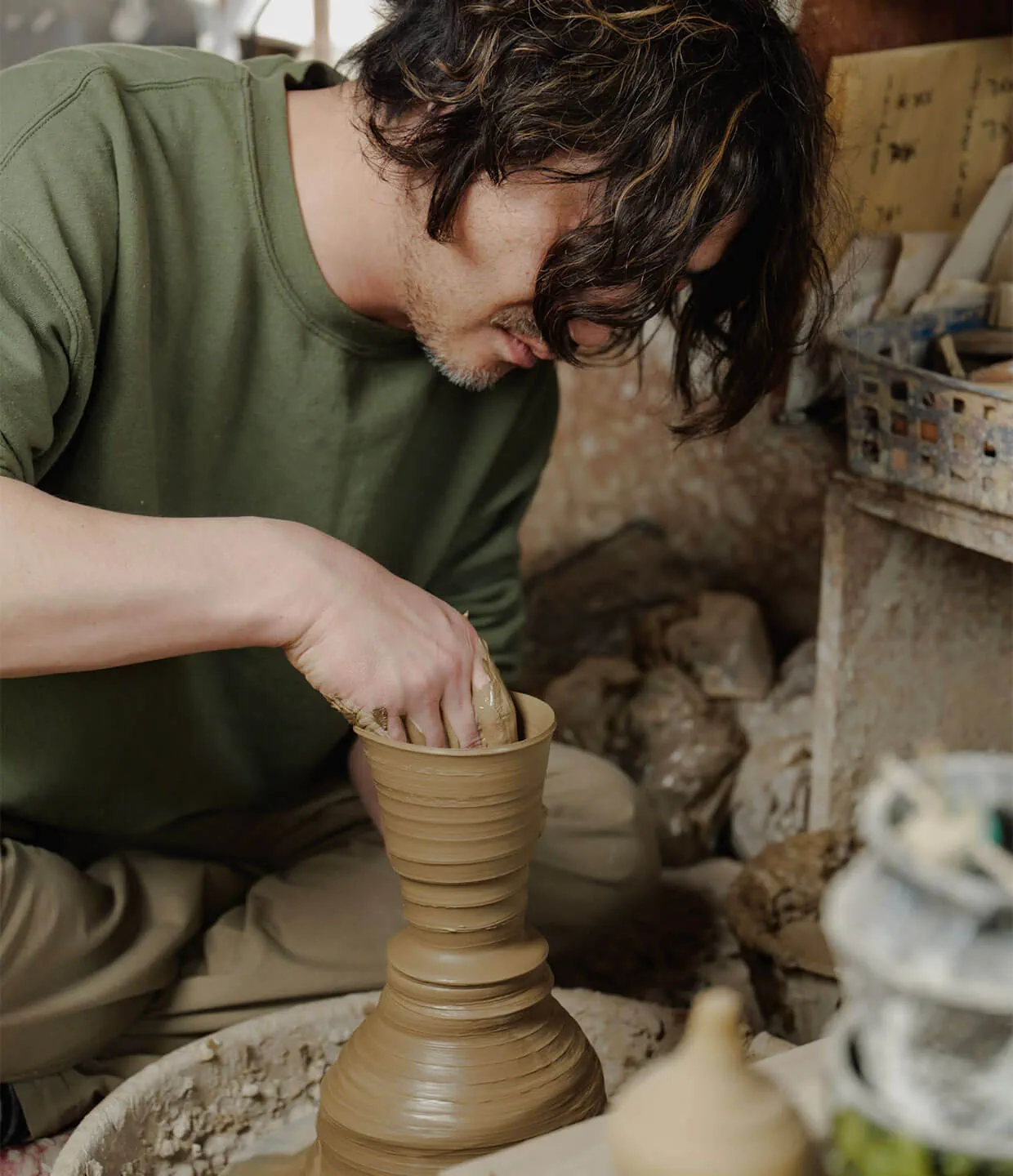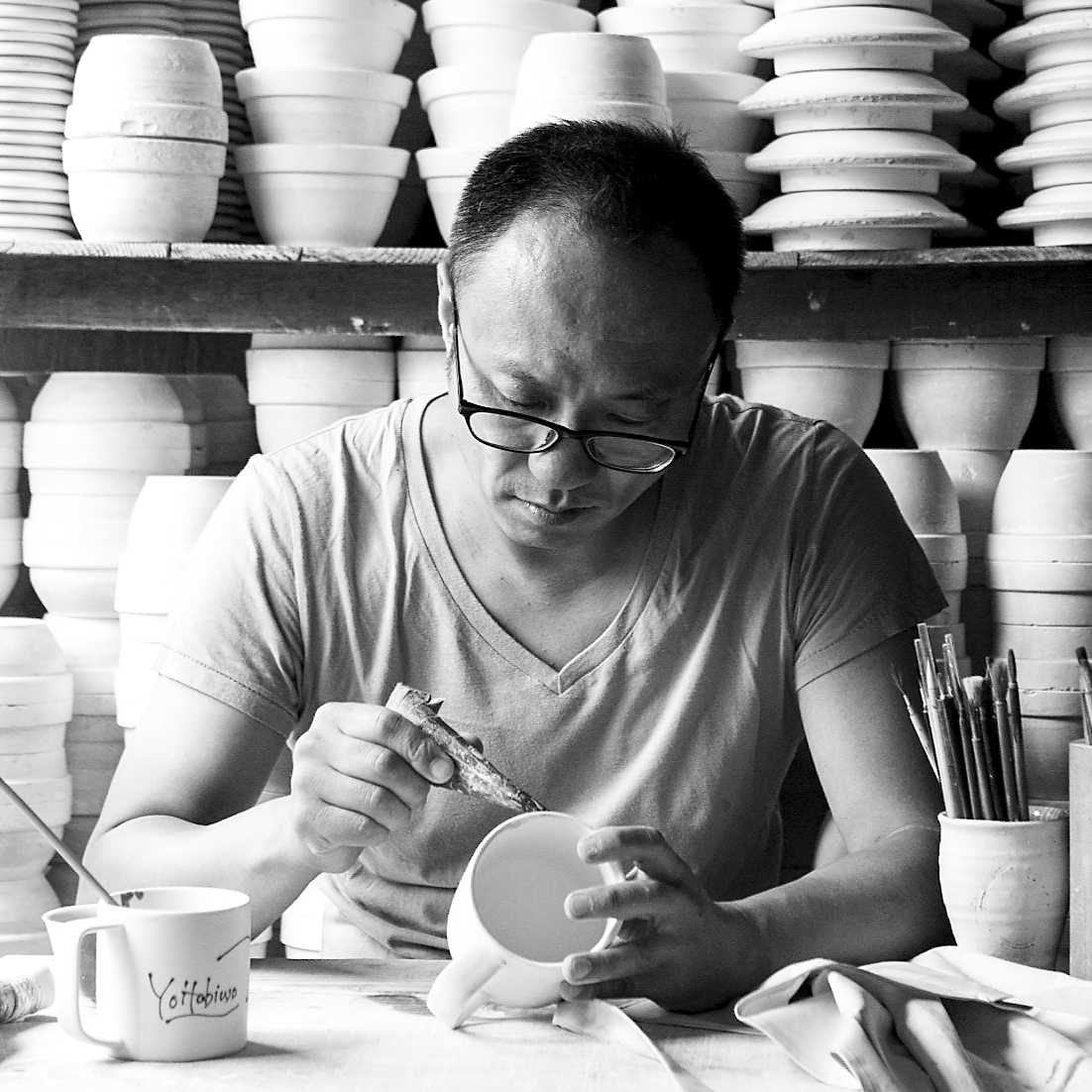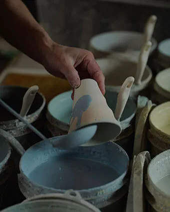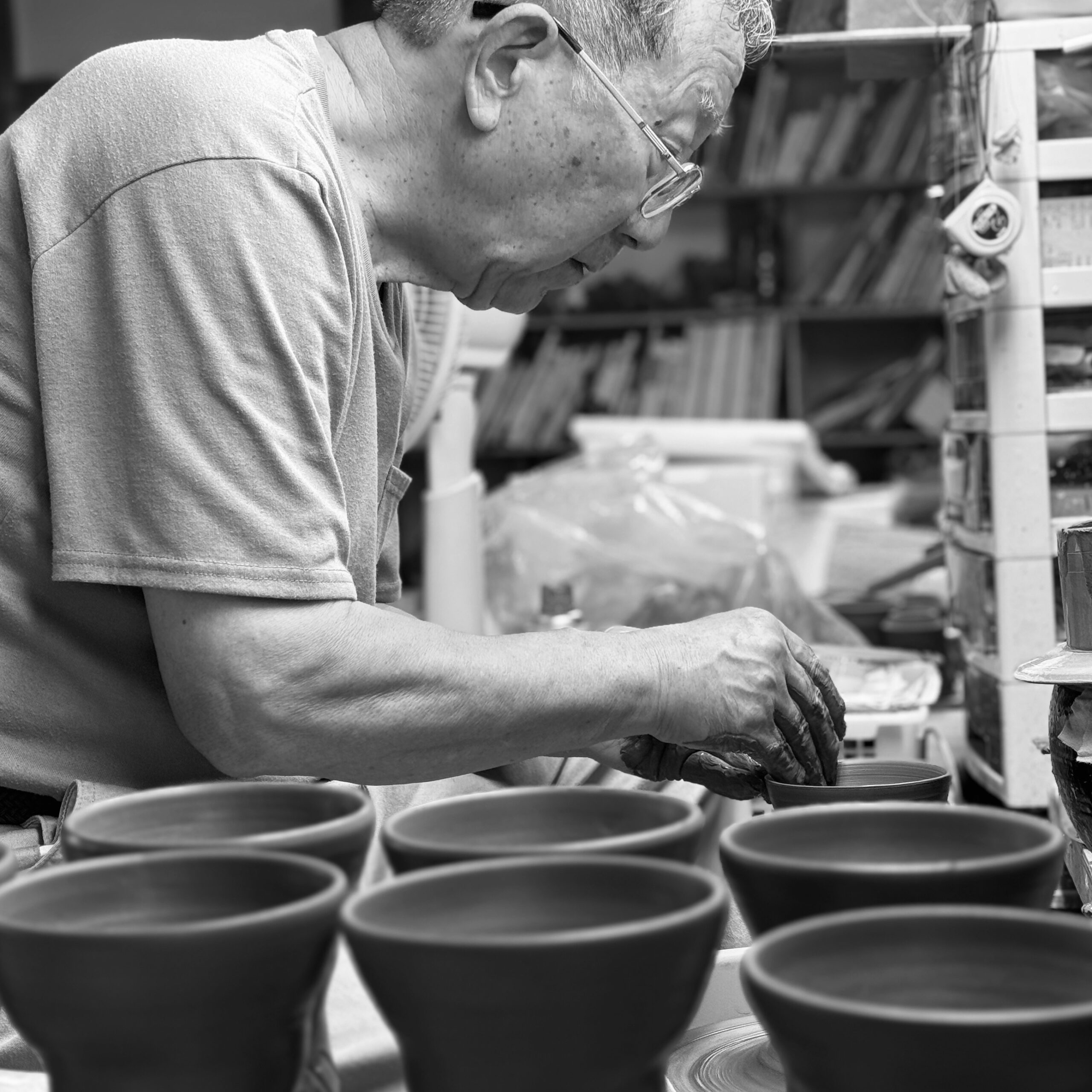 決められた完成品を機械的に作るのではなく、陶芸家が感性で練り、ろくろを挽き、色を付け制作します。