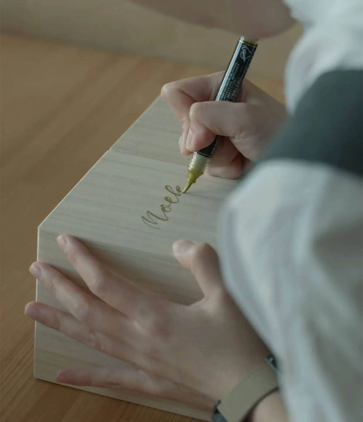 ご自身の名入りの木箱を初めて見た時に、これは何だろうとワクワクするような笑顔溢れるお姿を想像し、心を込めて書かせていただいております。手書きならではの温かさとやさしさを皆さまにお届けします!