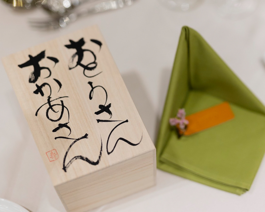 木箱の文字色もカスタマイズ可能です。会場装花やテーマカラーに合わせれば、より特別感を演出できます。木の温もりを感じるボックスは、和の雰囲気にもナチュラルなテーブルコーディネートにもピッタリです。