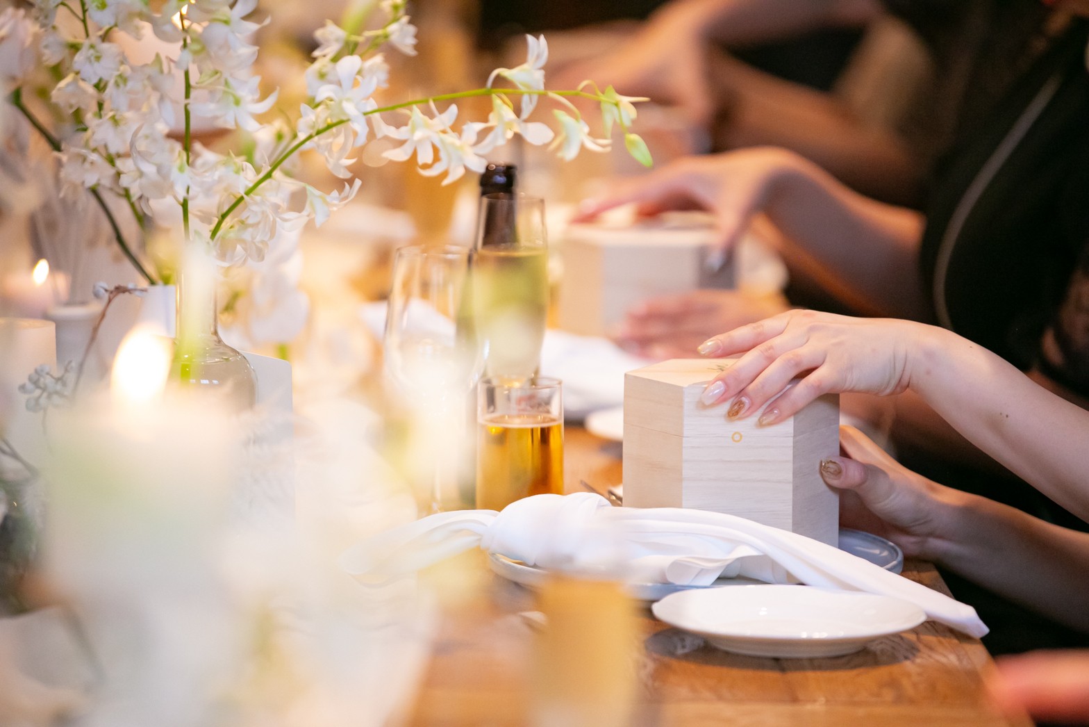 木箱の文字色もカスタマイズ可能です。会場装花やテーマカラーに合わせれば、より特別感を演出できます。木の温もりを感じるボックスは、和の雰囲気にもナチュラルなテーブルコーディネートにもピッタリです。